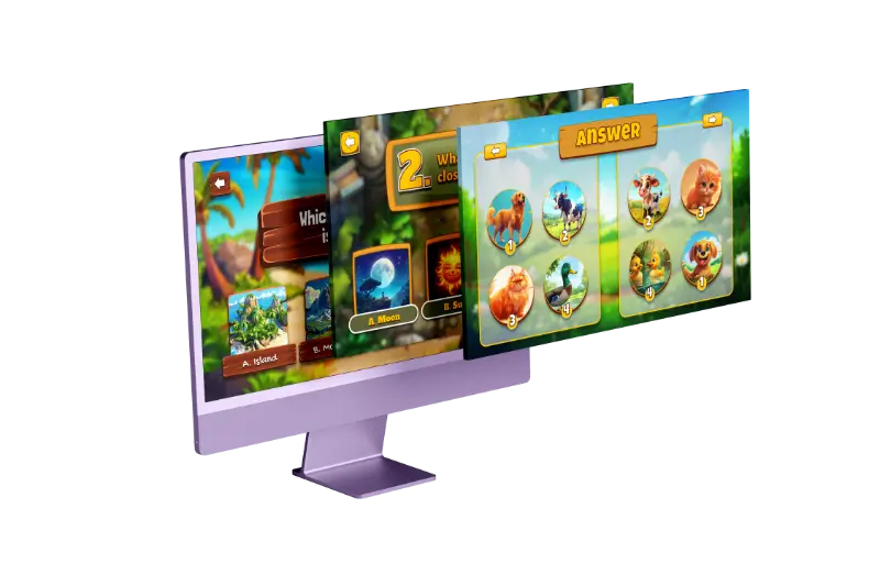 Extensive library of exclusive, children’s science video content – grounded in scientific data and enhanced with engaging animations for interactive learning. Each stage or part have 10 lessons with an interactive quiz game .
